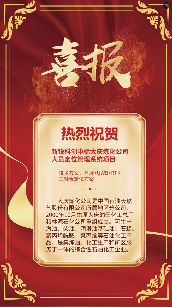 熱烈祝賀新銳科創(chuàng)(湖北)有限公司成功中標大慶煉化公司的人員定位管理系統(tǒng)項目!